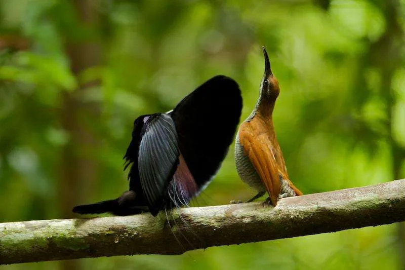 ขนสีดำของนกสวรรค์ตัวผู้สามารถดูดซับแสงได้ดี เพราะมีรูเล็กๆ มากมายในขน เมื่อ'แสงส่องลงบนขนนก และจากนั้นมันก็จะกระจายไปในรูเหล่านี้