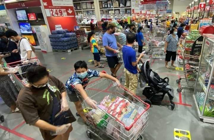 แต่พอมีข่าวว่ารับประกาศล็อคดาวคนก็แห่กันไปซื้อสินค้ามากักตุนถือว่านาย Supermarket คนคึกคักทีเดียว