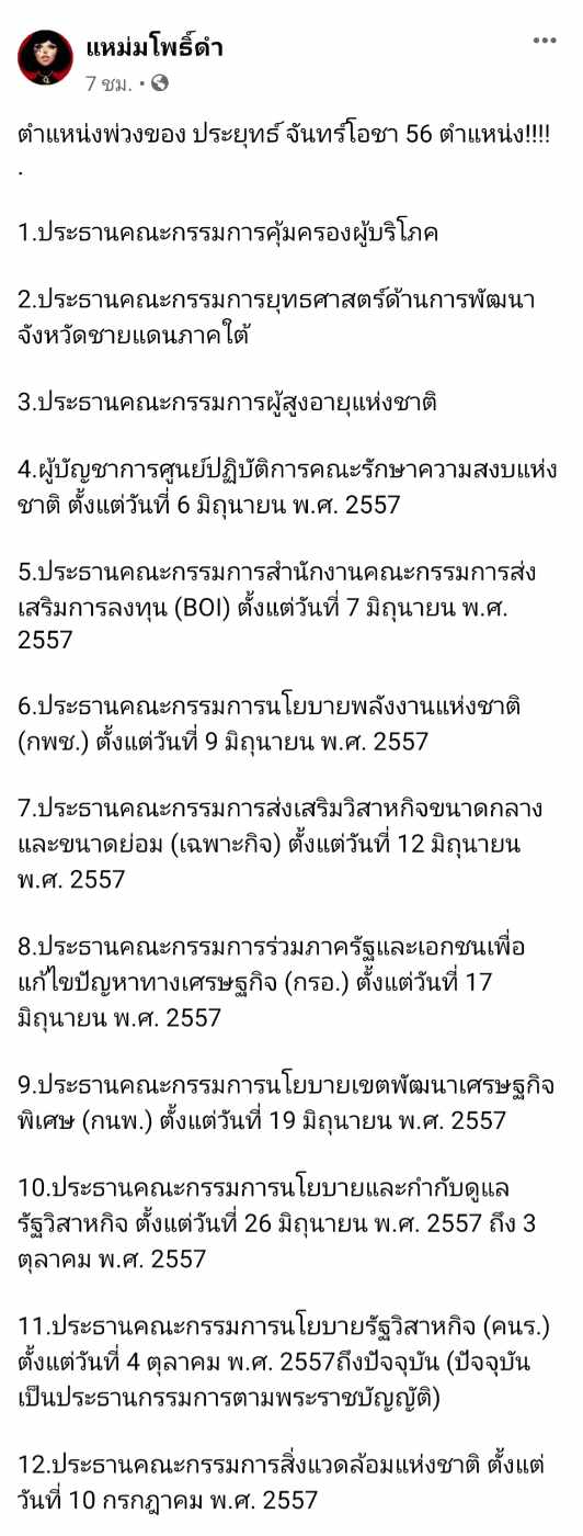 แหม่มโพธิดำจัดหนัก!!นายกลุงตู่ ยังมีพ่วงอีก 56 ตำแหน่ง