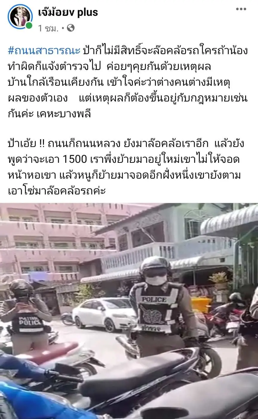 เพจเจ๊มอย ได้ โพสต์เกี่ยวกับ ป้าคนหนึ่ง ที่บางพลี ได้ล็อคล้อ น้องคนหนึ่ง ที่มาจอดมอเตอร์ไซค์หน้าหอ ซึ่งเป็นทางสาธารณะ