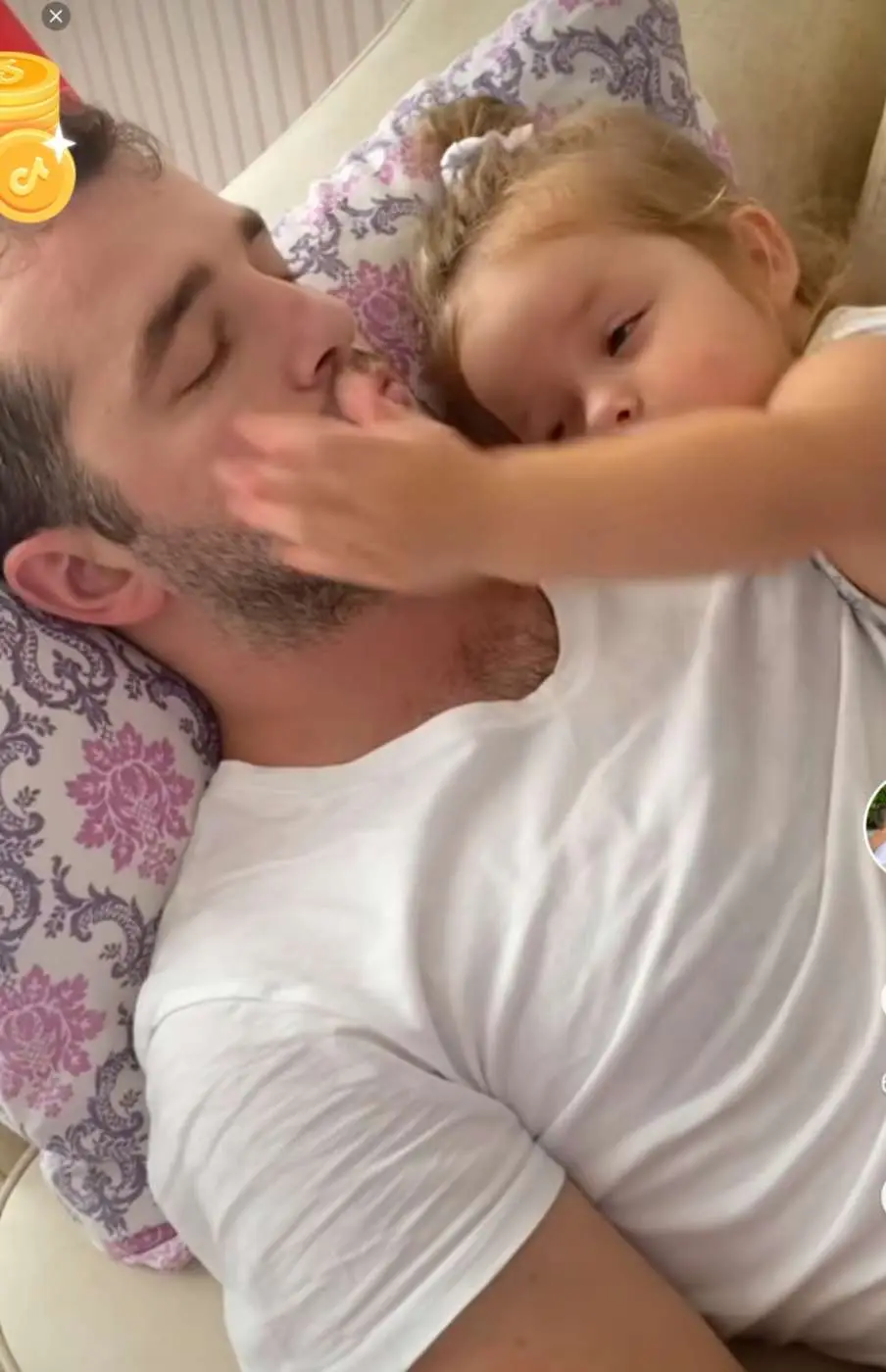 มีการลูบหัวตบหัวเบาๆเพื่อให้พ่อนอนหลับด้วยแหม ช่างน่ารักอะไรขนาดนี้จ๊ะหนูน้อยจ๋า