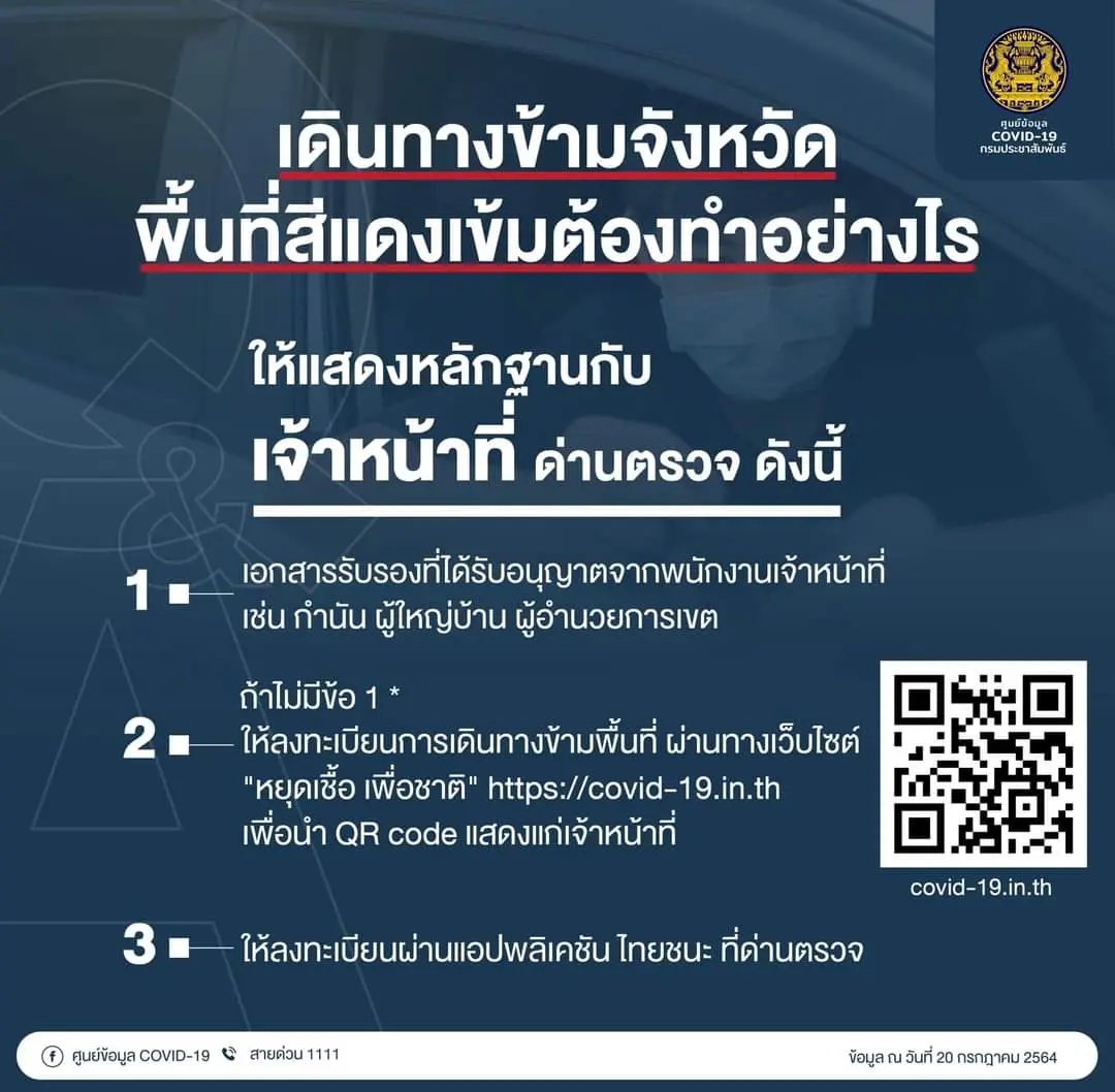 เดินทางข้ามจังหวัดพื้นที่สีแดงเข้มต้องทำอย่างไร❓