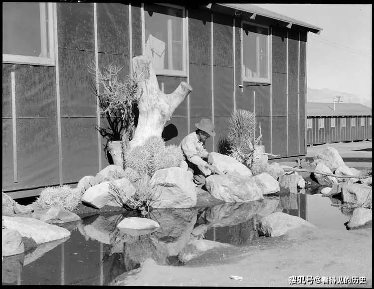 12. ในค่ายกักกัน Manzanal ในแคลิฟอร์เนีย เจ้าหน้าที่กักกันบางคนปลูกดอกไม้ในค่ายทหาร