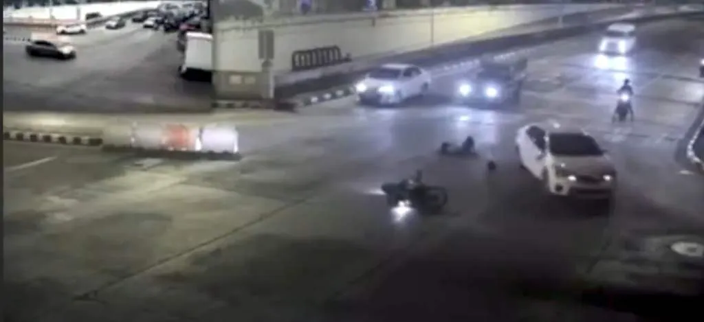 ในคลิปนี้จะเห็นว่ามีรถมอเตอร์ไซค์จอดรอไฟแดงอยู่แล้วก็มีรถเก๋งคันนึงขับมาด้วยความเร็วพุ่งชนไปที่ รถจักรยานยนต์ที่จอดรอไฟแดงอยู่ด้านหน้าจนพุ้งมาระยะหนึ่ง จากนั้นก็ ขับต่อไปโดยเลี้ยวซ้ายออกไป เลยโดยไม่สนใจ รถมอเตอร์ไซค์ที่ ต้นพุ่งชนอยู่ด้านหน้า