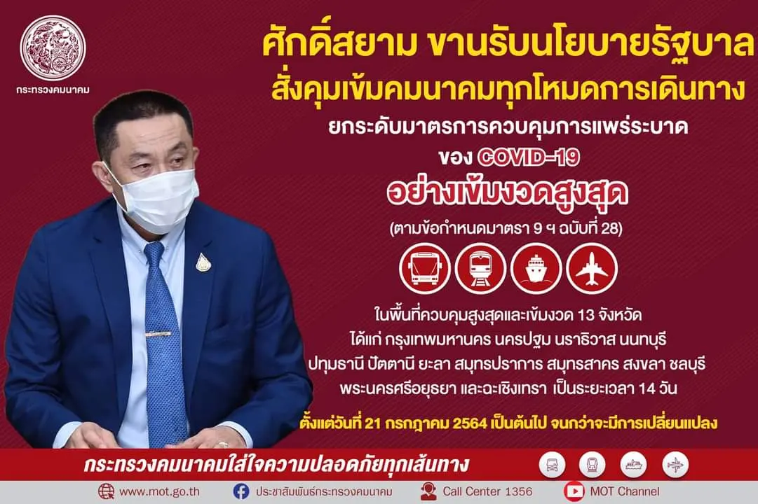 นายศักดิ์สยาม ชิดชอบ รัฐมนตรีว่าการกระทรวงคมนาคม ขานรับนโยบายรัฐบาล สั่งคุมเข้มหน่วยงานในสังกัดกระทรวงคมนาคมที่ให้บริการขนส่งสาธารณะทุกโหมดการเดินทาง