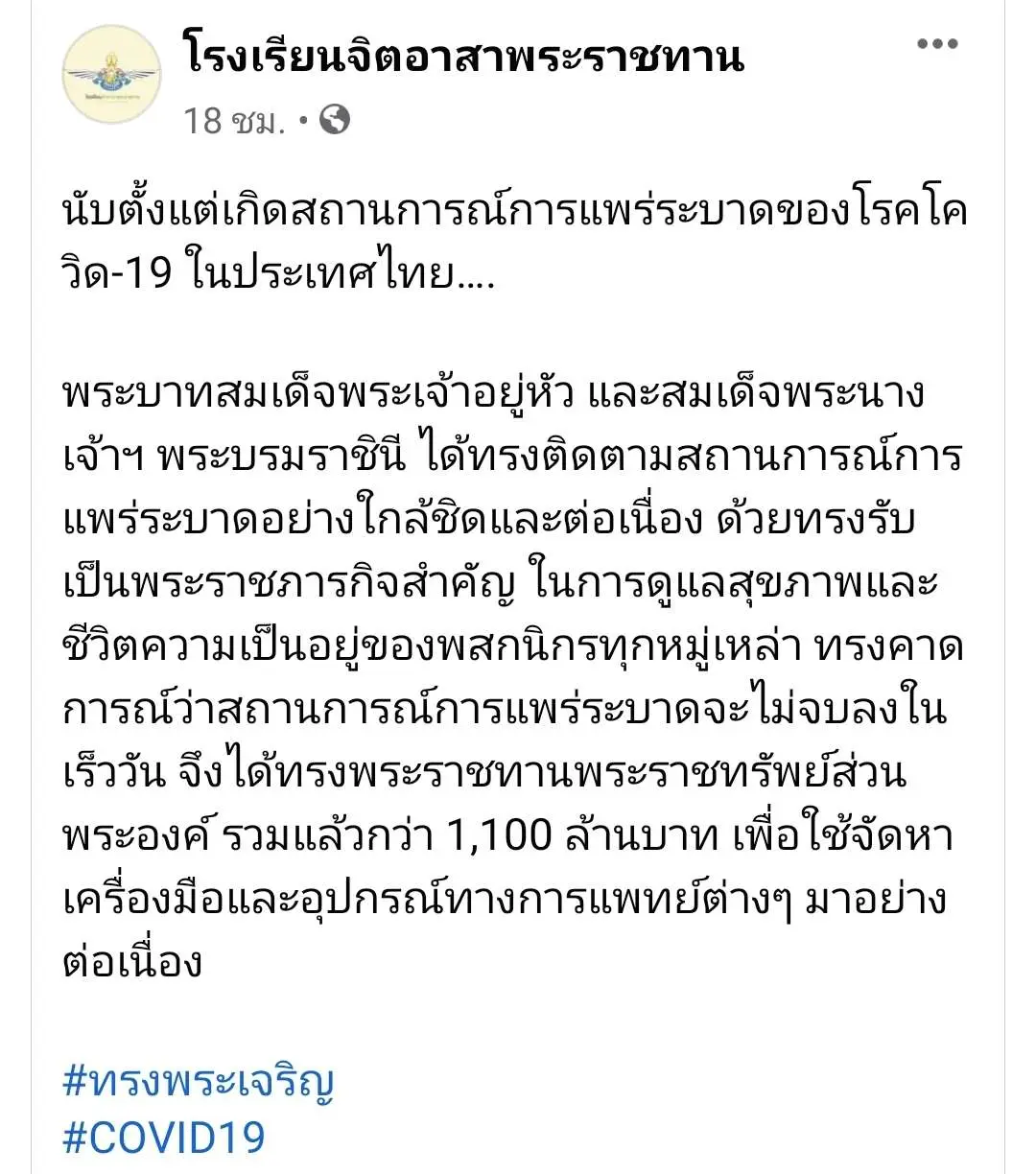 ในหลวงทรงช่วยเหลือประชาชนยามเชื้อไวรัสระบาดอย่างต่อเนื่อง