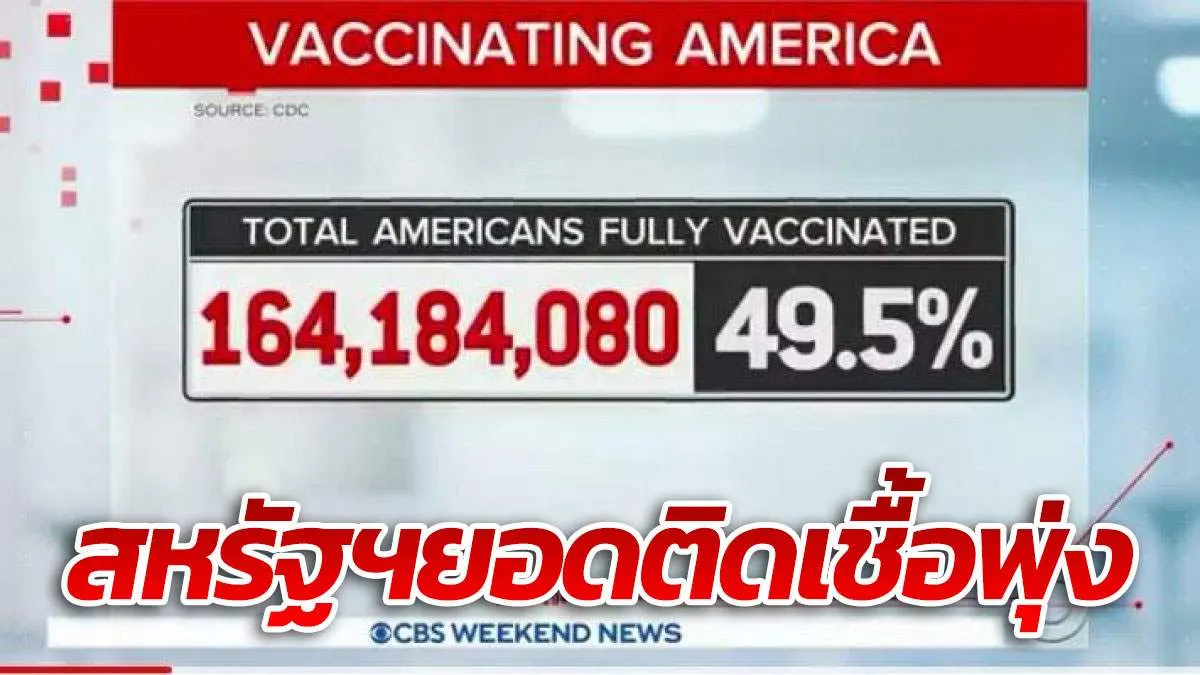 จำนวนผู้ติดเชื้อโคโรนาไวรัสเพิ่มสูงขึ้นอย่างเร็ว ในขณะที่สหรัฐฯฉีดวัคซีนครบโดสแล้ว 49.5 % หรือ 164 ล้านคน