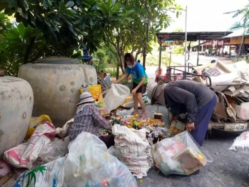 แล้วไปเก็บขยะจากไหน เจ้าตัวเผยว่า แถวบ้านบ้าง แล้วเราอยู่กรุงเทพ แล้วเรากลับบ้าน เราก็เก็บสะสม เอาไปให้เขาด้วย แสดงว่าเราไม่ได้ไปเก็บตามบ้านแล้วนำไปขาย เจ้าตัวเผยว่า เก็บจากที่บ้านด้วย แล้วก็เดินไปข้างทาง ร้านค้า เห็นมันข้างทางก็เก็บมา