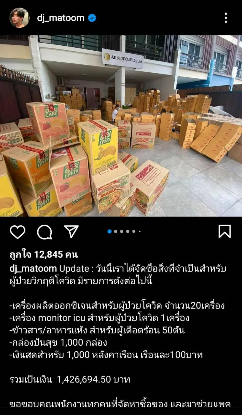 ดีเจมะตูม ส่งต่อน้ำใจ มอบอุปกรณ์ทางการแพทย์ - กล่องปันสุข - เงินสด สู้ภัยโควิด19