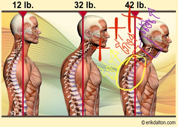 หัวของเรามีน้ำหนักมาก เกือบ 5 กิโล ถ้ามันตั้งอยู่ตรงโอเคตามหลัก center of gravity ที่น้ำหนักตกรับบน base of support นั่นก็คือกระดูกคอ