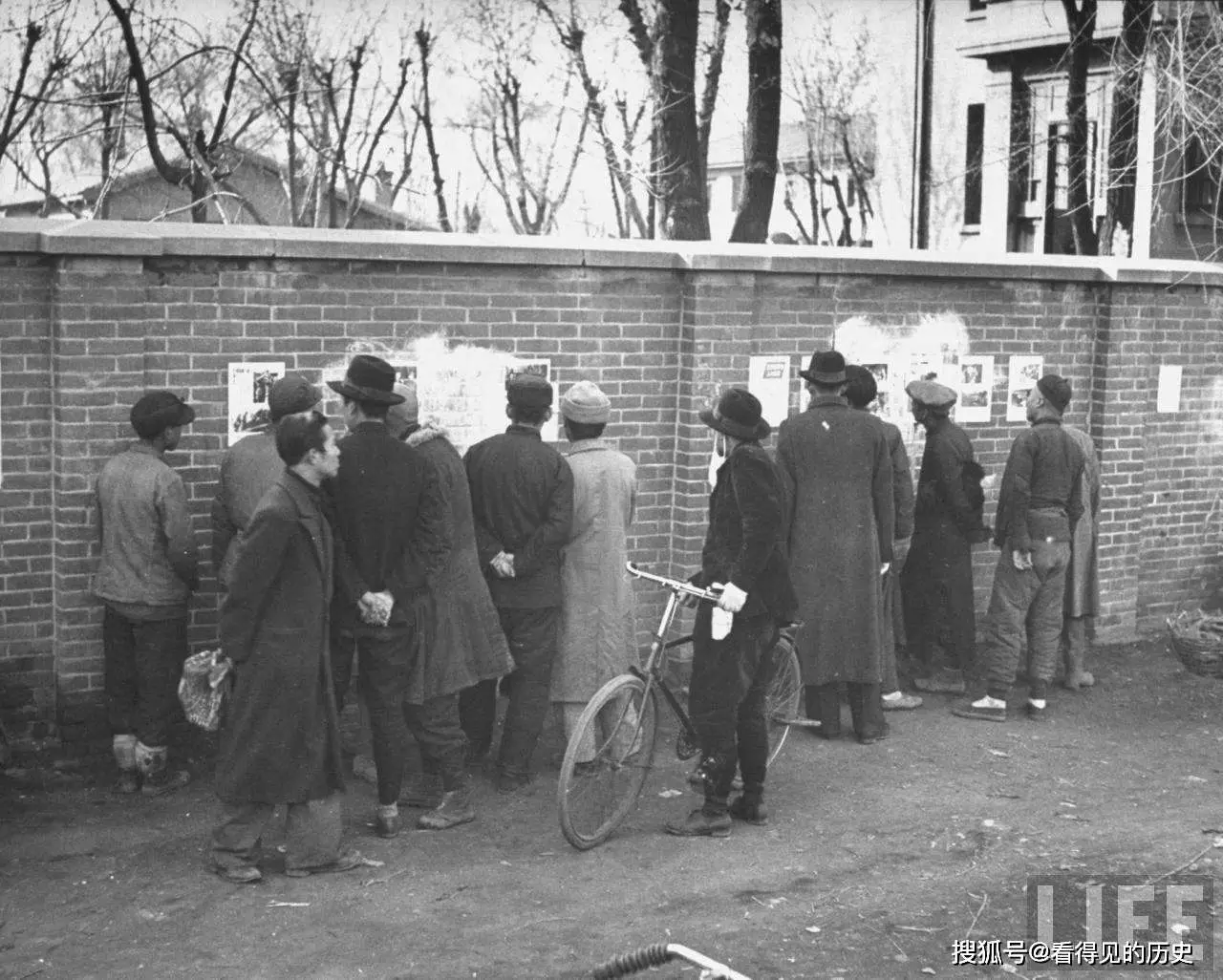 5. ประชาชนกำลังดูโปสเตอร์สถานการณ์ปัจจุบันที่ติดบนผนัง แหล่งที่มาคือ U.S. Information Agency ขณะนี้ KMT ภาคตะวันออกเฉียงเหนือและพรรคคอมมิวนิสต์กำลังทำสงครามกันอย่างตึงเครียด
