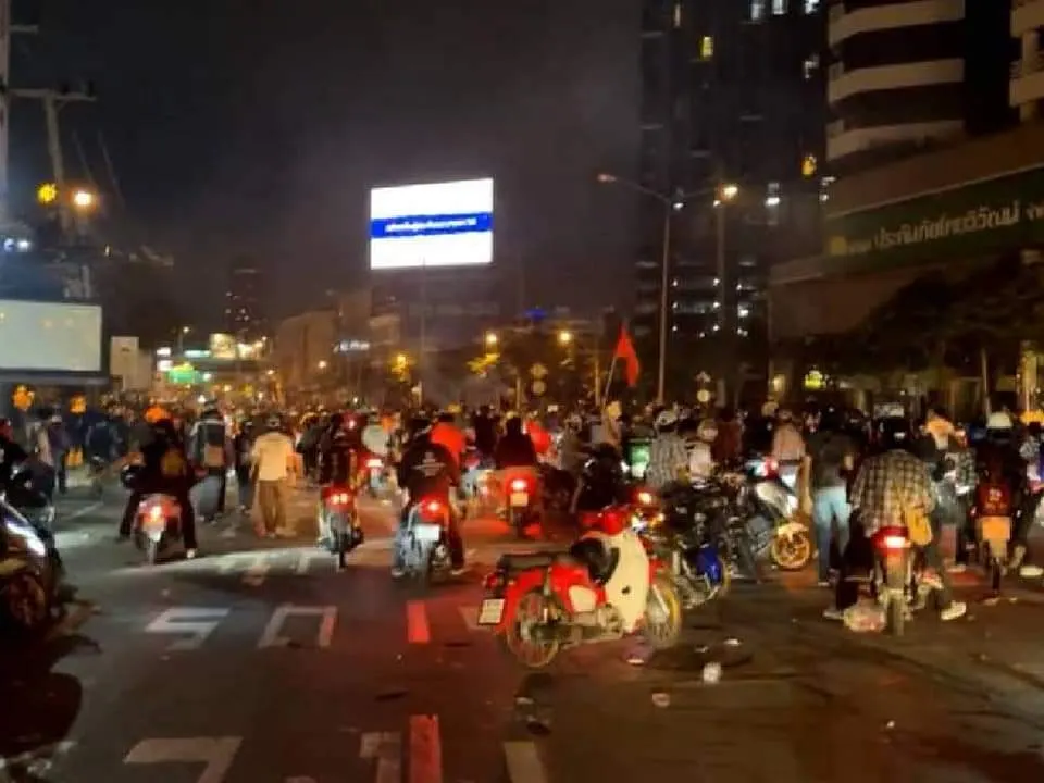 19.43 ป้อมตำรวจที่แยกดินแดงถูกเผา ยังมีการปะทะกันอย่างต่อเนื่อง