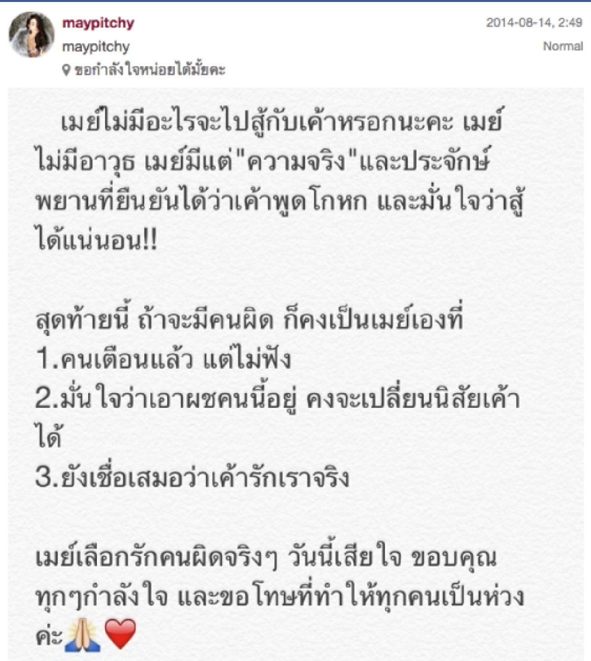 คำสารภาพ ของ เมย์ พิชญ์นาฏ พุดถึงอดีตคนรักของเธอ ผู้กำกับโจ้