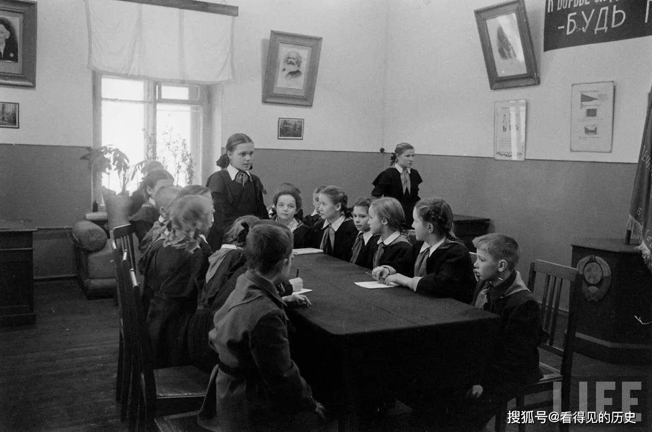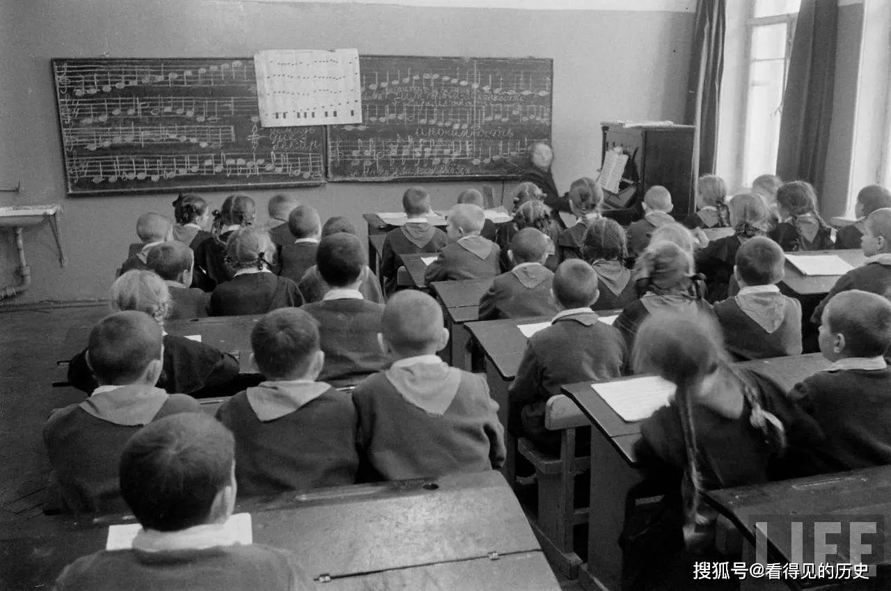 1. ในปี 1950 โรงเรียนประถมในมอสโก เมืองหลวงของสหภาพโซเวียต โดยมีนักเรียนตั้งใจฟัง