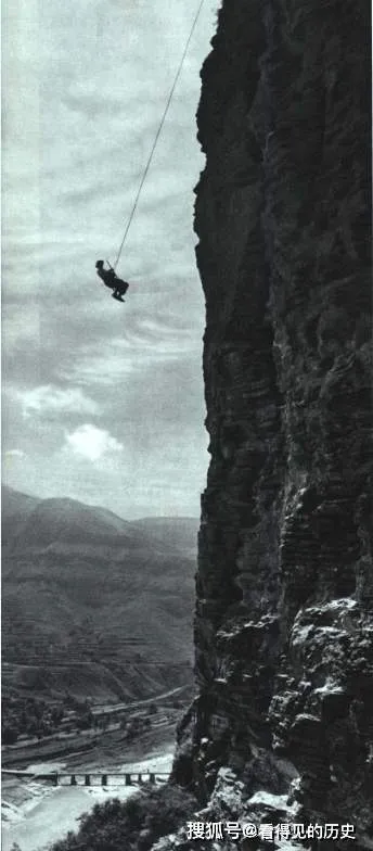 4. หลี่ เหวินเหยา ผูกเชือกเส้นใหญ่ไว้ที่เอว โรยเชือก แขวนอยู่บนหน้าผา กวัดแกว่งค้อน ใช้สว่านเหล็ก กำจัดความเสี่ยง