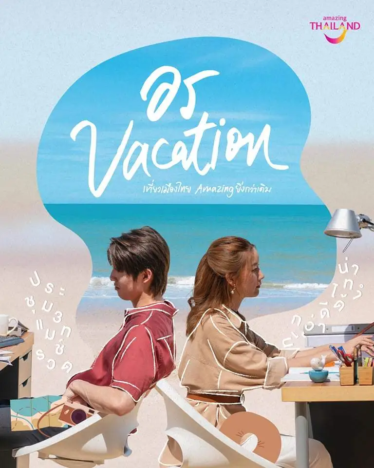 สำหรับ Mini Story ชุด “อร Vacation” ททท. ขอการันตี “ร้อยยิ้ม” อัดเต็มไปด้วยมุกน่ารักๆอิ่มหัวใจ และความสวยงามของเมืองไทย นำแสดงโดย ต่อ-ธนภพ ลีรัตนขจร และ อิ้งค์-วรันธร เปานิล ซึ่งนับเป็นการโคจรมาร่วมงานกันครั้งแรก ที่มาร่วมเติมความหวานและโมเม้นต์สุดจิ้น การันตีผลงานโดยผู้กำกับชื่อดัง หมู ชยพน บุญประกอบ ซึ่งเป็นเรื่องราวอินไซด์ของวิถีชีวิตสาวชาวออฟฟิศอย่าง “อร” (อิ้งค์ วรันธร) ที่เผชิญกับปัญหาความเครียดจากการทำงานโดยไม่พัก ทั้งเหนื่อยล้ากับการทำงานอย่างต่อเนื่อง ทั้งไม่สามารถแยกงานออกจากพื้นที่ส่วนตัว โดยมีเพื่อนรักรู้ใจสุดชิลอย่าง ท็อป (ต่อ ธนภพ) ชวน ‘อร’ Vacation วางปัญหาเรื่องงานไว้ก่อน และออกไปเยียวยาจิตใจ ซึ่งได้ยกกองถ่ายทำไปสัมผัสความสวยงามไกลถึงจังหวัดภูเก็ต จัดเต็มทั้งมุกตลกและโมเม้นท์สุดจิ้น เตรียมโดนตกกันทุกคน