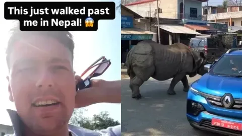 นักท่องเที่ยวงง หลังพบแรดยักษ์ เดินร่อนกลางหมู่บ้าน ในขณะที่ชาวบ้านเมินเฉย