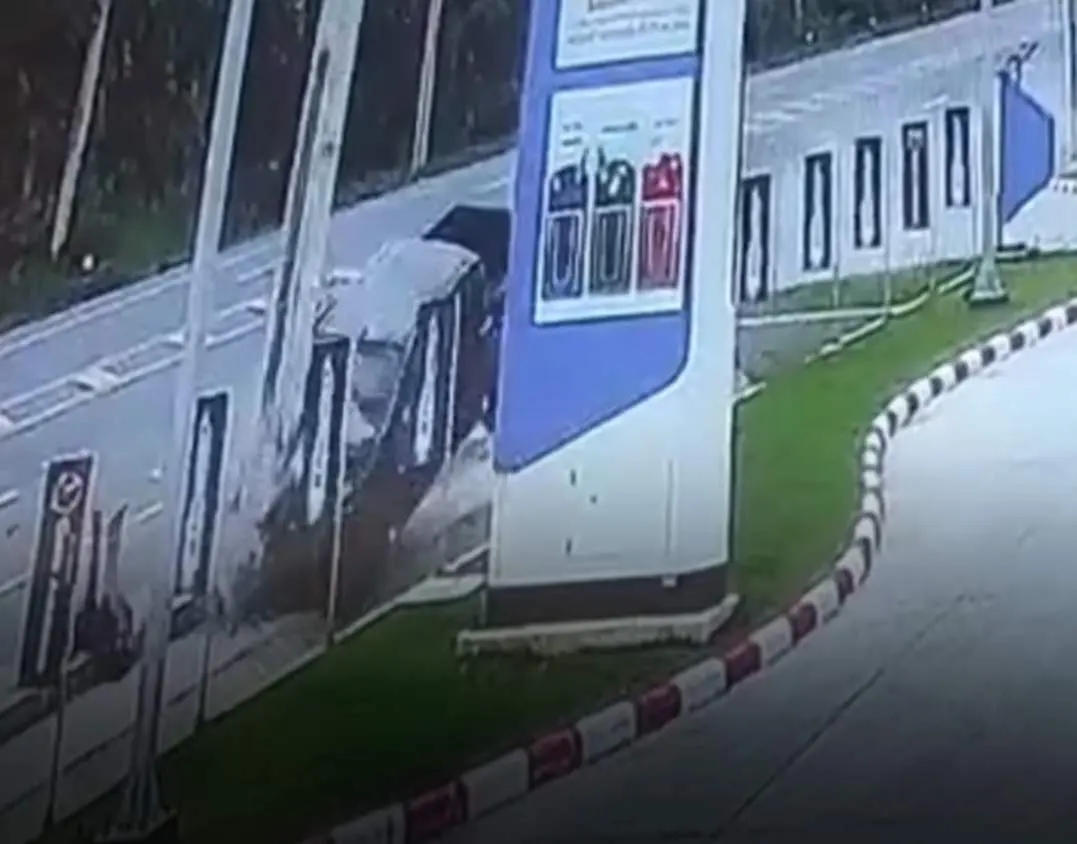 คลิปนาทีระทึก รถกะบะขับมาโดยความเร็วพุงชนเสาไฟฟ้าล้มทั้งยืน