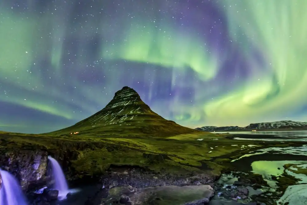 เขาเคิร์กจูเฟลไฮไลท์ของของไอซ์แลนด์ภูเขา Kirkjufell สูง 463 เมตรบริเวณชายฝั่งตอนเหนือของไอซ์แลนด์ใกล้กับเมืองGrundarfjördurสถานที่ยอดนิยมในช่วงฤดูหนาวนอกจากสีขาวโพลนของหิมะที่ปกคลุมยอดเขาและน้ำที่กลายเป็นน้ำแข็งจนถูกเลือกให้เป็นโลเคชั่นในซีรีส์ชื่อดัง Game of Thrones