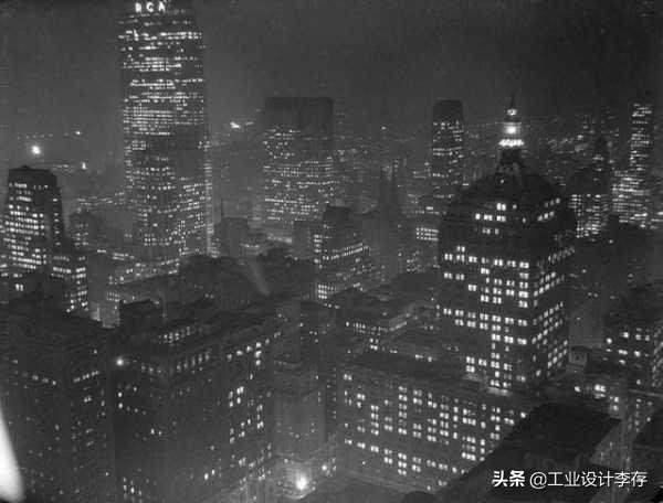 ทิวทัศน์ยามค่ำคืนของตัวเมือง อาคารนิวยอร์กเซ็นทรัลและอาคารอาร์ซีเอตั้งอยู่ทางซ้ายและขวา ภาพถ่ายเมื่อเดือนธันวาคม 1937