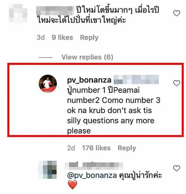 "ปู่number 1 ปีPeamai number2 Como number 3 ok na krub don’t ask tis silly questions any more pleach"
