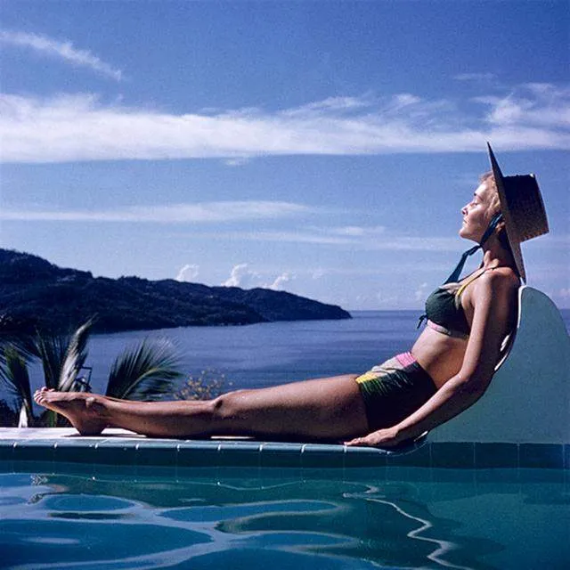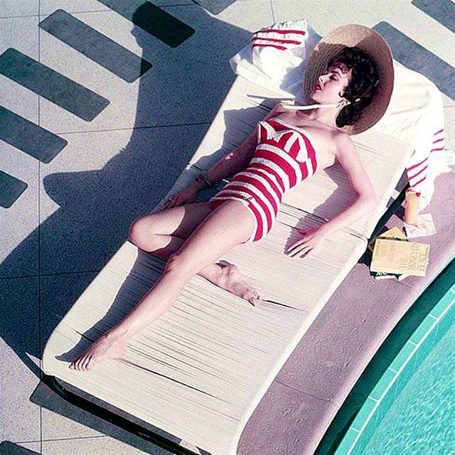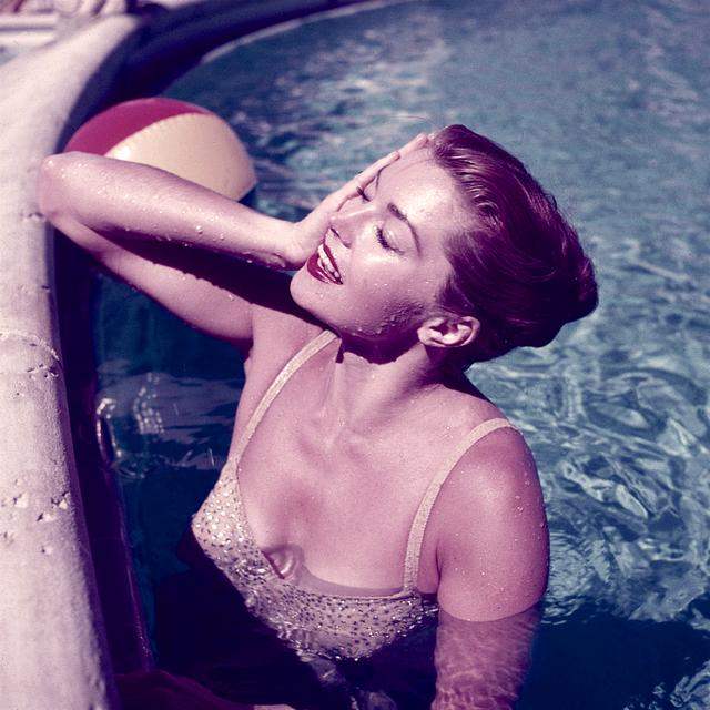 ในปี 1955 ภรรยาของช่างภาพชาวอเมริกัน Slim Allens ว่ายน้ำในสระ
