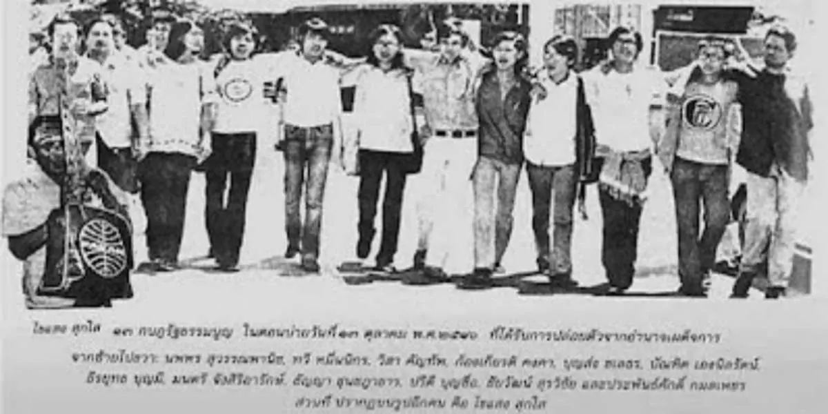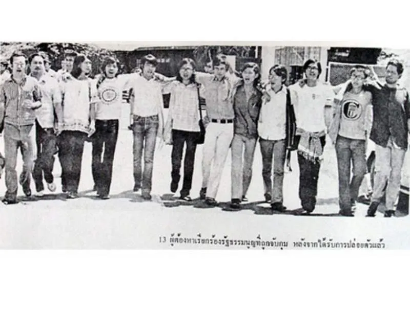 เหตุการณ์ 6 ตุลาคม 2516 มีบุคคลร่วมลงชื่อ 100 คน เพื่อเรียกร้องขอรัฐธรรมนูญ ซึ่งประกอบด้วยบุคคลหลากหลายอาชีพ หลายวงการ เช่น นักวิชาการ นักการเมือง นักคิด นักเขียน นิสิต นักศึกษา เป็นต้น จากนั้น บุคคลเหล่านี้ราว 20 คน นำโดย นายธีรยุทธ บุญมี ได้เดินแจกใบปลิวเรียกร้องรัฐธรรมนูญตามสถานที่ต่าง ๆ ในกรุงเทพฯ เช่น ประตูน้ำ, สยามสแควร์, อนุสาวรีย์ชัยสมรภูมิ