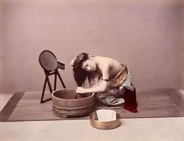 5. ในปี พ.ศ. 2423 ประเทศญี่ปุ่น หญิงสาวสระผม Kimbei/ภาพถ่าย, ลงสีด้วยมือ