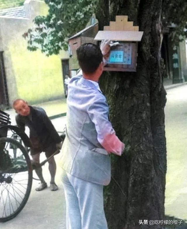 บนถนนในหนานชางในปี 1942 ชายในชุดสูทกำลังส่งจดหมายไปที่ตู้ไปรษณีย์
