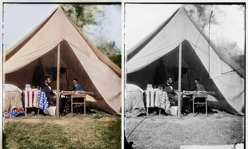 2. ภาพถ่ายเก่าที่ Mario ฟื้นฟูนั้นถ่ายในช่วงกลางถึงปลายศตวรรษที่ 19 และต้นศตวรรษที่ 20 และบางภาพมีอายุมากกว่า 150 ปีด้วยซ้ำ ภาพถ่ายเหล่านี้บางส่วนเกิดขึ้นเพื่อบันทึกช่วงเวลาสำคัญในประวัติศาสตร์ของสหรัฐอเมริกา ตัวอย่างเช่น ในช่วงสงครามกลางเมืองอเมริกา ประธานาธิบดีลินคอล์น พบกับนายพลจอร์จ บี. แมคเคลแลน (จอร์จ บี. แมคเคลแลน) แห่งกองทัพสหพันธรัฐในเต็นท์