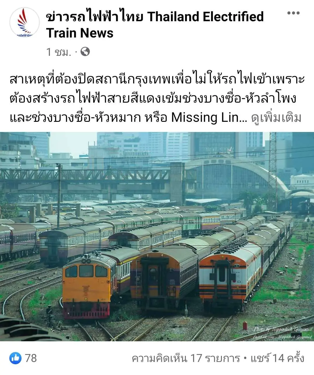 สาเหตุที่ต้องปิดสถานีกรุงเทพเพื่อไม่ให้รถไฟเข้าเพราะต้องสร้างรถไฟฟ้าสายสีแดงเข้มช่วงบางซื่อ-หัวลำโพงและช่วงบางซื่อ-หัวหมาก หรือ Missing Link