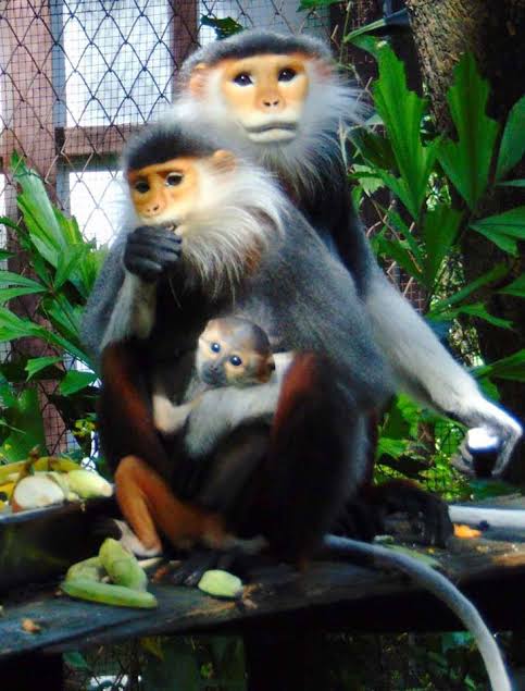 Five-colored lemurs Red-shanked douc, as the name suggests, has a body and a gray head. But the forehead is reddish black, white beard, white tail and buttocks, yellow face, red shin, making it the most beautiful lemur in the world found in deep rainforest and highland forest at 200 elevation. -1,400 meters above sea level