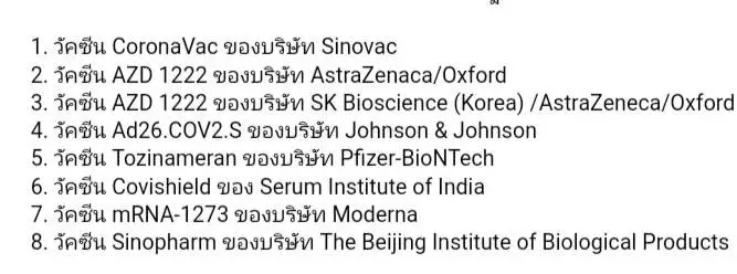 ในปัจจุบันประเทศไทยอนุมัติรับรองวัคซีนโควิด -19 แล้ว 8 ยี่ห้อ และทุกๆคนที่มีอายุ 18 ปีขึ้นไปควรได้รับวัคซีนโควิด-19 ครบแล้วก่อนเดินทางเข้าราชอาณาจักร (ไทย) ซึ่งในขณะที่ข้อบังคับการรับวัคซีนจะแตกต่างออกไปสำหรับผู้ที่มีอายุต่ำกว่า 18 ปี (สามารถหารายละเอียดต่อได้ Google)