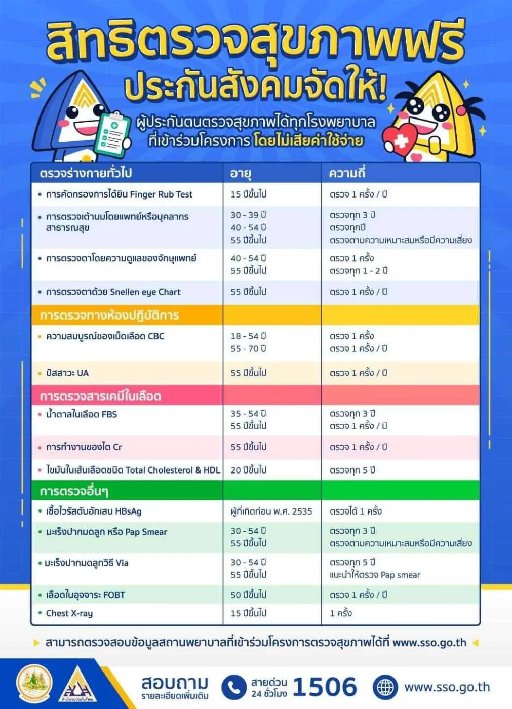 หรือการตรวจสุขภาพต่างๆตามเกณฑ์ที่กำหนด ไปดูกันนะครับว่ามีอะไรบ้าง ของผู้ที่ประกันสังคม