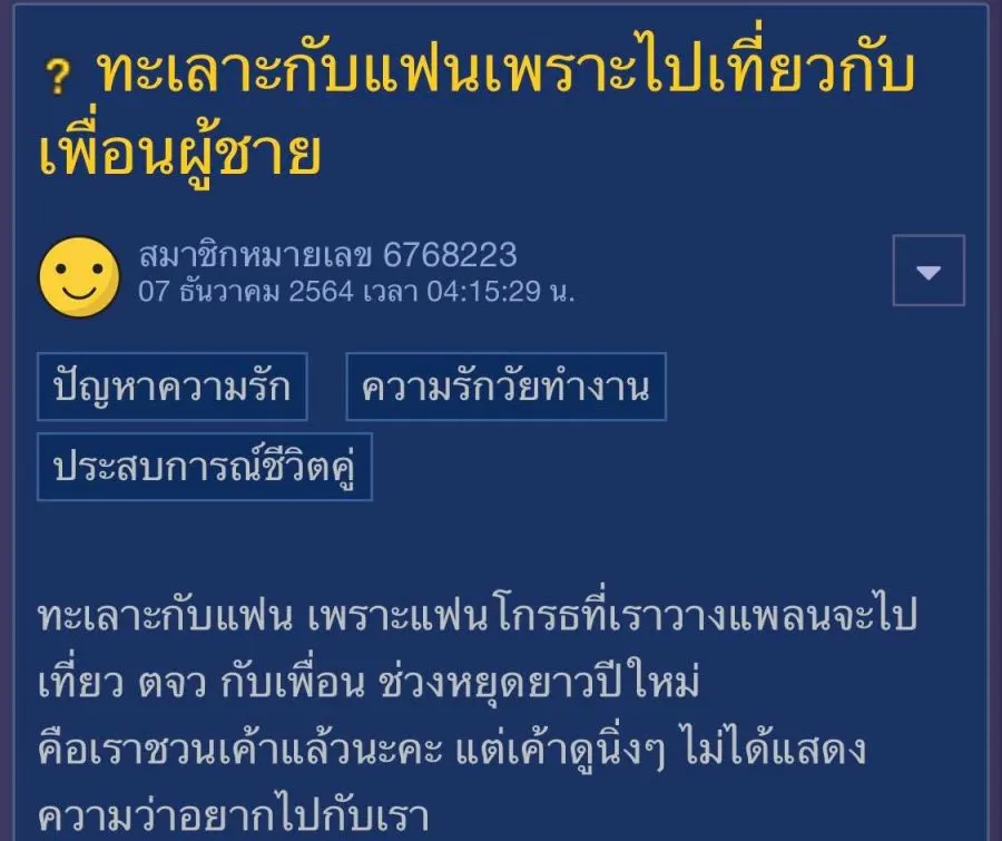 ทะเลาะกับแฟน เพราะแฟนโกรธที่เราวางแพลนจะไปเที่ยว ตจว กับเพื่อน ช่วงหยุดยาวปีใหม่