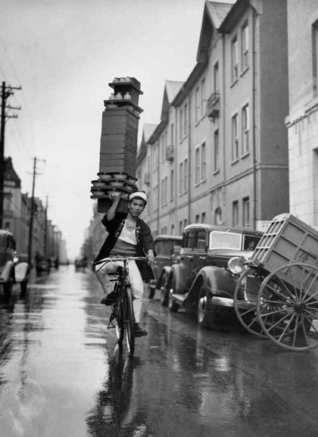 ภาพถ่ายเหล่านี้ถ่ายกลางศตวรรษที่ 20 บนถนนในโตเกียวแสดงให้เห็นว่าการจัดส่งอาหารมีหน้าตาเป็นอย่างไรก่อนที่จะมีการโจมตีบริการสมัยใหม่เช่น Swiggy