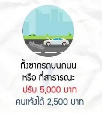 7. ทิ้งซากรถบนถนน หรือ ที่สาธารณะ ถูกปรับ 5,000 บาท