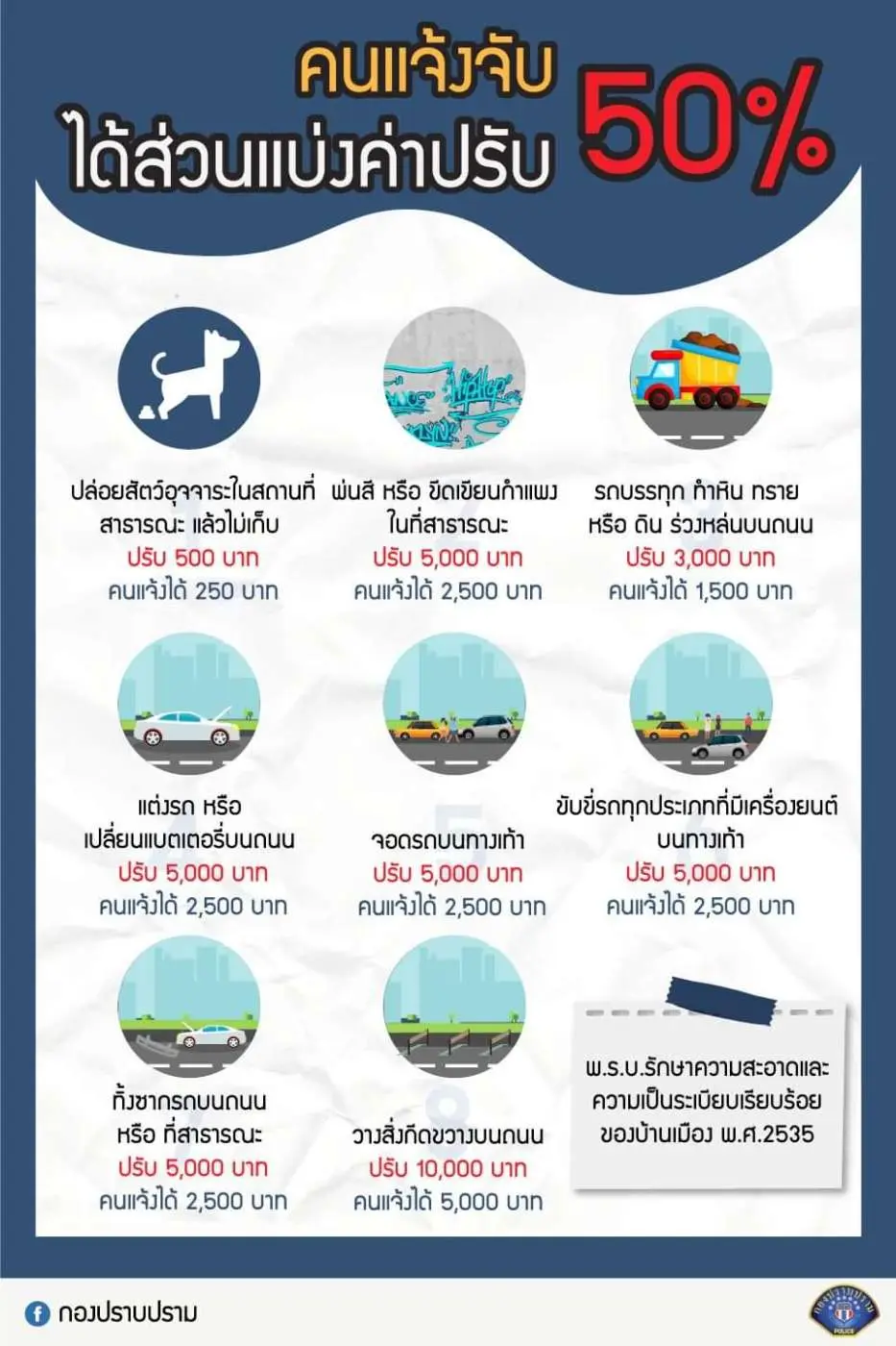 ความผิดมากมาย ที่เราต่างมองข้าม เพราะเห็นว่าเป็นเพียงเรื่องเล็กๆน้อยๆ ซึ่งการกระทำผิดเหล่านี้กลายเป็นวิถีชีวิต และส่วนหนึ่งของการดำเนินชีวิต ซึ่งทุกคนต้องยอมรับกันไปแล้ว กฎหมายจึงอยากให้ทุกคนมีส่วนร่วมในการรักษาความสะอาดและความเป็นระเบียบเรียบร้อยของบ้านเมือง โดยผู้แจ้งจะได้รับส่วนแบ่งร้อยละ 50 ของค่าปรับ หากแจ้งจับในสิ่งผิดกฎหมาย 8 ข้อนี้