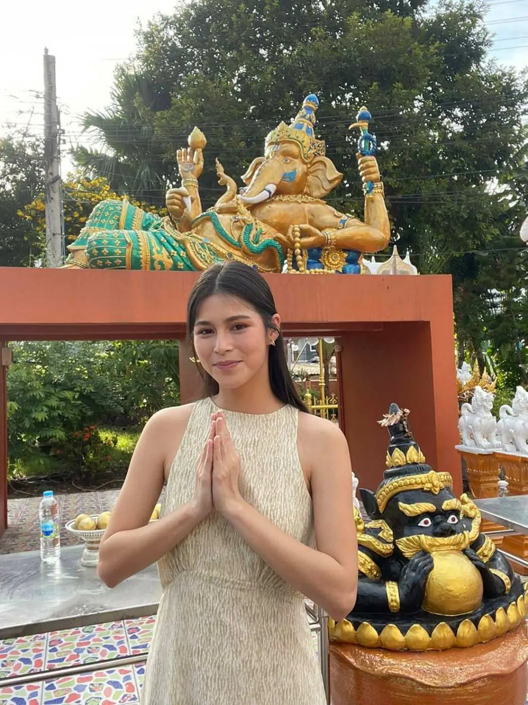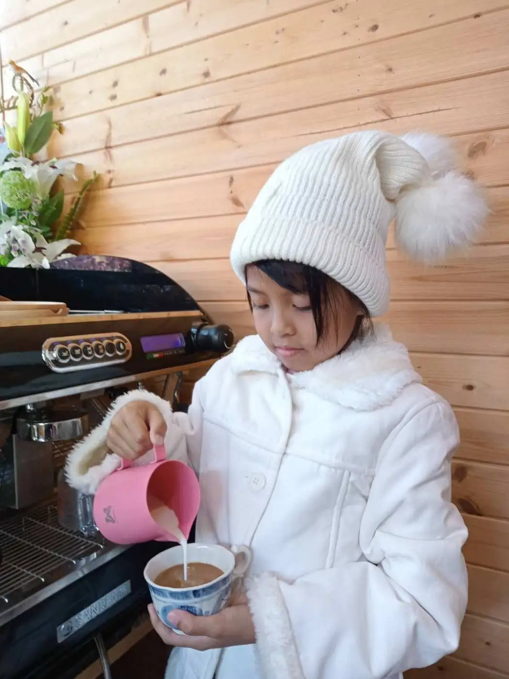 “น้องไอจี ก็อยากให้ทุกๆ คนแวะมาเที่ยวที่วัดบางบัวกันนะคะ ใกล้จะวันหยุดปีใหม่แล้ว ก็แวะมาทำบุญที่วัดบางบัวกันได้ค่ะ น้องไอจี และ พี่กาย พี่กร คุณแม่ รอต้อนรับทุกๆ คน อยู่ที่ร้านกาแฟออมม่าเอซาราง@วัดบางบัว น้องไอจีอยากให้ทุกๆ คน ได้แวะมาชิมฝีมือในการชงกาแฟของน้องไอจี และพี่กาย พี่กร ตอนนี้น้องไอจี สนุกกับการเป็นบาริสต้ามากๆ ค่ะ ตอนแรกคิดว่าจะยาก แต่พอได้ลองจริงๆ ก็ไม่อยากเลยค่ะ สนุกมาก ตอนทำใหม่ๆ น้องไอจี ตื่นเต้นมากๆ เวลาลูกค้าเข้ามาสั่งกาแฟ คุณแม่ก็จะให้น้องไอจีได้ลองชงกาแฟดู แล้วที่ร้านยังมีทั้ง โกโก้ ชาเขียว และมีเมนูอื่นๆ อีกมากมาย หรือจะแวะมาทานขนมเค้กก็ได้นะคะ ที่ร้านยังมีมุมถ่ายรูปสวยๆ เยอะมาก อย่างวันก่อน พี่ยิหวา ปรียากานต์ ก็แวะมาที่ร้านค่ะ พี่ยิหวาสวยมาก น่ารัก และใจดีมากๆ ใครที่ชอบดื่มกาแฟ ชอบถ่ายรูปสวยๆ และชอบทำบุญ ก็แวะมาที่วัดบางบัวกันได้นะคะ วัดที่นี่สวยงามมาก มีโบสถ์สีชมพูที่สวยงาม มีบ่อน้ำให้อาหารปลาได้ด้วย น้องไอจี กับคุณแม่ ชอบไปมาให้อาหารปลากันเป็นประจำค่ะ หรือจะมาขอพรจากองค์พระพิฆเนศ และอย่าลืมแวะมาที่ร้านออมม่าเอซาราง@วัดบางบัว น้องไอจี ยินดีต้อนรับทุกๆ คนค่ะ"