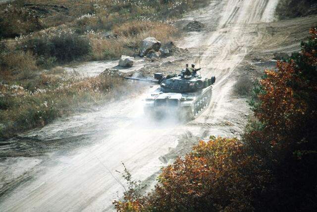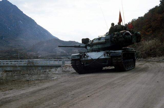 รูปภาพรถถังต่อสู้หลัก M60 ขั้นสูงของกองทัพสหรัฐฯ ประจำการที่เกาหลีในทศวรรษ 1980