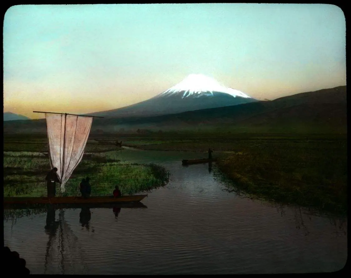 ผู้คนแล่นเรือที่เชิงเขาฟูจิ