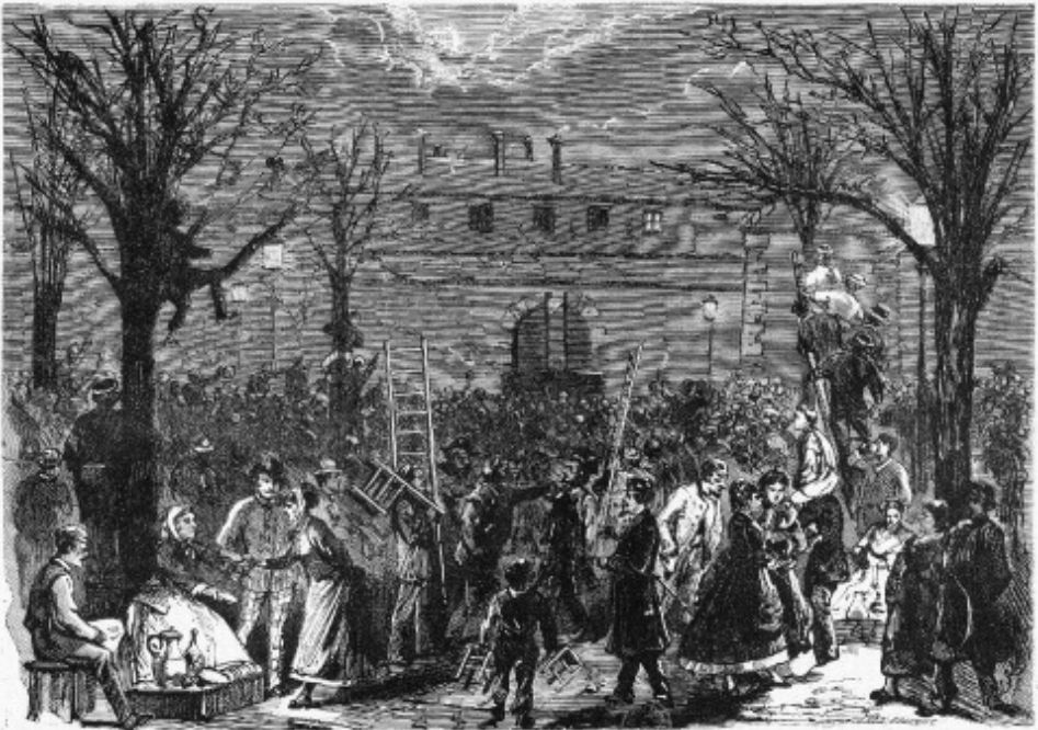 ฝูงชนที่ Place de la Roquette ในปารีสรอการประหารชีวิต Troppmann ภาพถ่าย: “Bibliothèque Nationale de France”