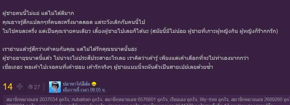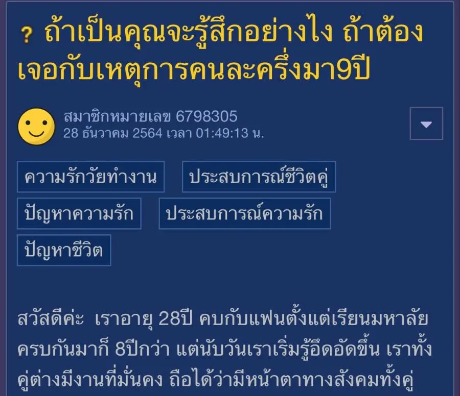 สวัสดีค่ะ เราอายุ 28ปี คบกับแฟนตั้งแต่เรียนมหาลัย ครบกันมาก็ 8ปีกว่า แต่นับวันเราเริ่มรู้อึดอัดขึ้น เราทั้งคู่ต่างมีงานที่มั่นคง ถือได้ว่ามีหน้าตาทางสังคมทั้งคู่ สมัยเรียนมหาลัยเวลาไปไหน ถ้ามีค่าใช้จ่ายเราจะหารกันคนละครึ่งตลอด พอเรียนจบ เราจบก่อน ทำงานก่อน (เนื่องจากคณะเราเรียน4ปี แต่คณเขาเรียนมากกว่า) ช่วงที่เริ่มทำงาน เราก็ไปหาเดือนละครั้ง ค่าใช้จ่ายทุกอย่างเราจ่ายเอง เราไม่คิดอะไรมาก แต่พอเขาเริ่มทำงาน(อยู่คนละจังหวัด) เราก็เป็นฝ่ายเดินทางไปหาอยู่เหมือนเดิม ค่าใช้จ่ายเราก็ยังคงจ่ายเอง แม้กระทั่งค่าอาหารเราก็ยังจ่ายคนละครึ่งเหมือนเดิม ทั้งๆที่รายได้เขามากกว่าเราด้วยซ้ำ ใช้คำว่ามากกว่า 2เท่าก็ว่าได้ เราเริ่มรู้น้อยใจในหลายๆครั้ง เพราะรู้สึกเหมือนตัวเองไม่สำคัญอะไรเลย วันสำคัญอะไรไม่มี ขนาดวันวาเลนไทน์ดอกไม้สักช่อยังไม่มีเลย ต่อมา เขาย้ายเข้ามาทำงานจังหวัดเดียวกัน เราก็เจอกันบ่อยขึ้น เดือน 2ครั้ง ด้วยเวลาที่ทำงานที่ไม่ตรงกันเท่าไหร่ สถานะการณ์เราก็เหมือนเดิม ไปทานข้าวก็ยังคนละครึ่งเหมือนเดิม ขนาดวันเกิดเรายังได้แค่ ส่งสติกเกอร์ HBD มาให้แค่นั้น เราไม่ได้ต้องการให้ใครมาเลี้ยงเรา เพราะเราหาเลี้ยงตัวเองได้ แต่มันก็ต้องมีบ้างมั้ยค่ะคนเป็นผู้ชายต้องแสดงความเป็นผู้นำอะไรออกมาหน่อย เราเคยพูดเรื่องนี้กับเขา แต่เราไม่ได้คำตอบอะไรกลับมาเลย ถามว่าเรารักเขามัยเราตอบได้เลยว่าเรารักเขามาก แต่เรามองอนาคตการสร้างครอบครัวกับเขาไม่เจอ เราควรไปต่อหรือพอแค่นี้