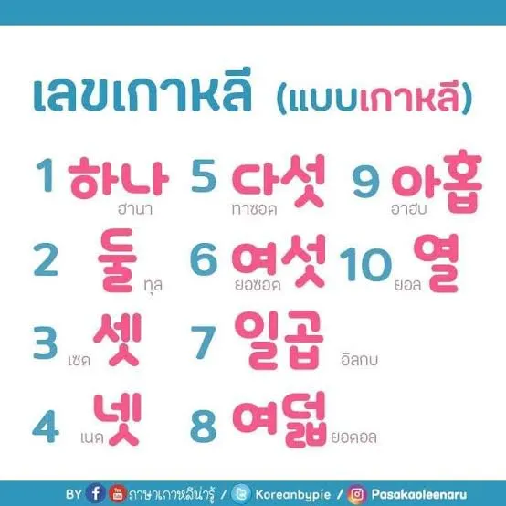 6. คำศัพท์เกาหลี สำหรับตัวเลข (ใช้กับจำนวนนับ)
