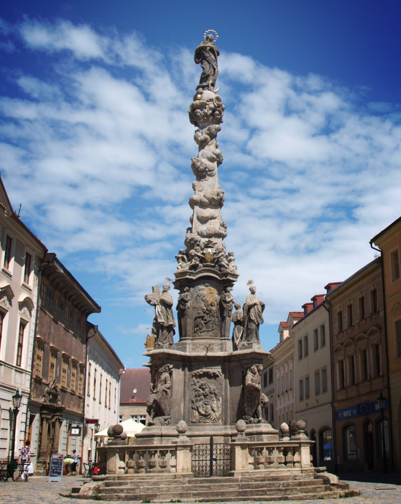 ในปีเดียวกันนั้นเอง ได้มีการเปิดตัวเสาไม้โดยแสดงพระตรีเอกภาพบนเสาโครินเทียนพร้อมกับทูตสวรรค์เก้าองค์ที่แกะสลัก ถูกแทนที่ด้วยเสาหินในปี 1687
