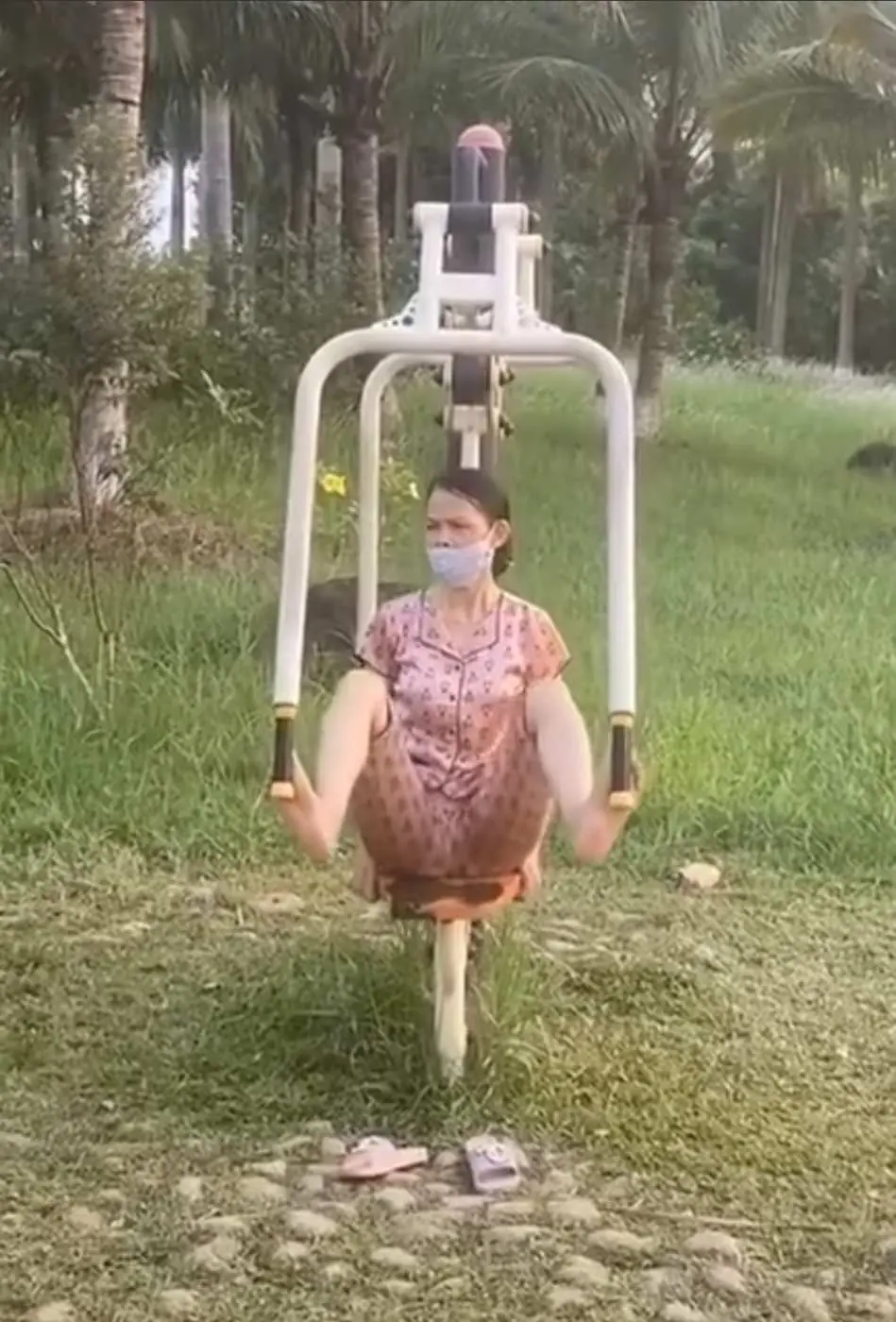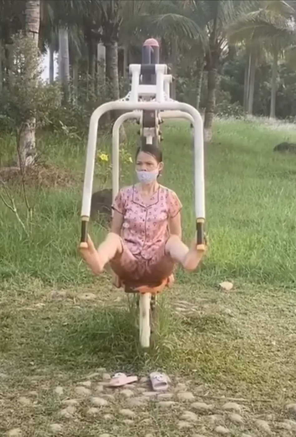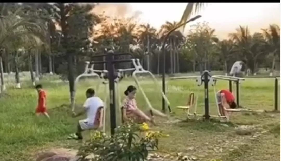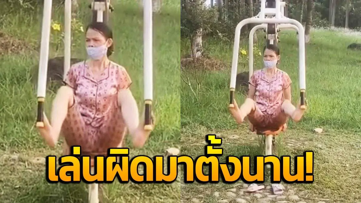 เครื่องเล่นฟิตเนสบ้างเครื่องที่เขาตั้งให้คนในหมู่บ้านออกกำลังกาย บางคนก็ไม่รู้นะว่าจะเล่นอย่างไรหรือบางคนก็เล่นผิดมาตั้งนาน