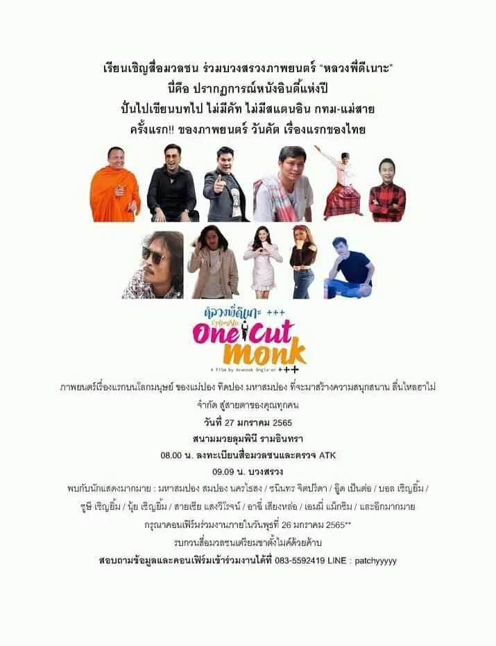 แม่ปอง’ ร่วมบวงสรวง เปิดกล้องหนัง ‘หลวงพี่ดีเนาะ’ พี่ตั๊ก อรุณศักดิ์ อ่องลออ ผู้กำกับฯ พร้อมทีมนักแสดงจากทั่วฟ้าเมืองไทย ฤกษ์ดี 27 มกราคม เวลา 09.09 น. ที่สนามมวยลุมพินี บวงสรวงเป็นที่เรียบร้อยและเดินหน้าถ่ายทำเต็มที่สำหรับภาพยนตร์เรื่อง "หลวงพี่ดีเนาะ" นำทีมโดย ผู้กำกับอินดี้ตลอดกาลตั๊ก อรุณศักดิ์ อ่องลออ , สิทธิรุจน์ เสถียรจารุพงศา ผู้อำนวยการสร้าง และประจักษ์ชัย ไหทองคำ โคโปรดิวเซอร์ รับประกันภาพยนตร์เรื่องนี้มีแต่ความฮาแถมให้สาระข้อคิดไปในตัว นำทีมนักแสดงโดยแม่ปอง หรือ สมปอง นครไธสง ที่ขึ้นแท่นพระเอกภาพยนตร์ครั้งแรก! พร้อมด้วย ทิดปอง สมปอง นครไธสง , อู๊ด เป็นต่อ , บอลล์ เชิญยิ้ม , ชูษี เชิญยิ้ม , นุ้ย เชิญยิ้ม , เหลือเฟือ ม๊กจ๊ก , เอ็มมี่ แมกซิม , กานต์ วิภากานต์ ศุขพิมาย , ชนินทร จิตปรีดา , กานต์ ทศน , นวลละออง ดอนเสือ , มนชยา เซเคอร์ , สายเชีย แสงวิโรจน์ , อาฉี เสียงหล่อ พร้อมด้วยมิสแกรนด์เลย ชนากานต์ นาโสม , มิสแกรนด์บึงกาฬ สุมินตรา ชุดชนบท , มิสแกรนด์สกลนคร อรุณลักษณ์ โมทะนีชัยโชค และนักแสดงอีกมากมาย ซึ่งมีการถ่ายทำกันที่พิพิธภัณฑ์หมู่บ้านมีชีวิต จังหวัดบึงกาฬ และภาพยนตร์เรื่อง "หลวงพี่ดีเนาะ" เป็นการถ่ายทำแบบ ONE CUT ไม่มีการตัดต่อ นับว่าเป็นปรากฏการณ์ใหม่ของวงการหนังไทย และยังเป็นหนังวันคัทเรื่องแรกที่ยาวที่สุดของประเทศไทย พร้อมขึ้นแท่นหนังวันคัทอันดับ1 ของเอเชีย และของโลก หลวงพี่ดีเนาะ เป็นเรื่องราวอลวน ณ หมู่บ้านแห่งหนึ่งในแถบภาคอีสาน หลวงพี่ท่านหนึ่ง ที่มองโลกในแง่ดี มีปัญหาอะไรๆก็พูดว่า 'ดีเนาะ' แถมคนในหมู่บ้านแต่ละคนยังพาให้อลเวง เล่าเรื่องด้วยการเน้นความสนุกสนาน เฮฮา แต่แฝงไปด้วยสาระและข้อคิด งานนี้แฟนๆได้รับชมทุกโรงภาพยนตร์ในวันที่ 14 พฤษภาคม 2565 วันเข้าพรรษานี้ฮาแน่นอน