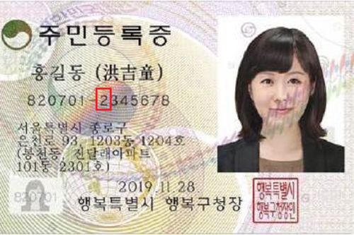 ที่อาศัยอยู่ในเกาหลีภายใต้กฎหมายการจดทะเบียนผู้มีถิ่นที่อยู่ของเกาหลี มีไว้เพื่อระบุตัวบุคคลได้ง่าย