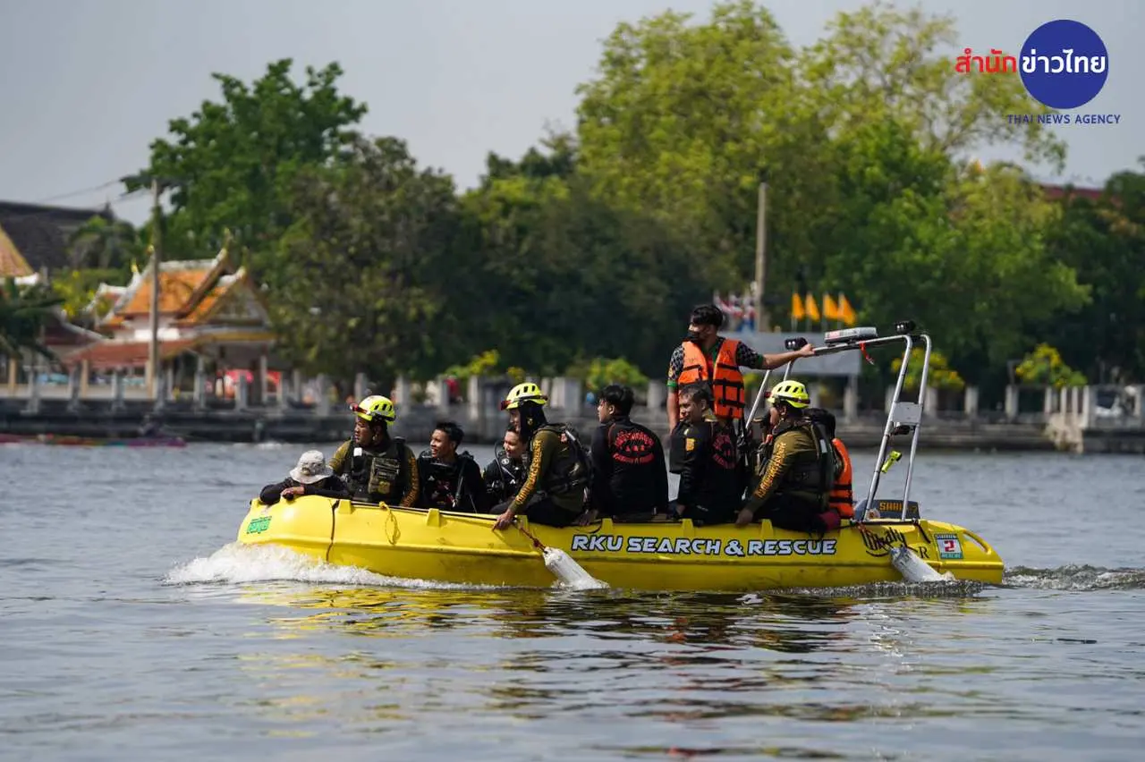 ด้านกู้ภัยได้ตั้งแถวในน้ำดำลงไปงมหา "แตงโม" นิดา พัชรวีระพงษ์ ที่ตกสปีดโบ๊ท บริเวณสะพานพระราม 7 ตั้งแต่เมื่อคืนที่ผ่านมา โดยเจ้าหน้าที่จะใช้วิธีเดินแถวหน้ากระดาน จากกลางแม่น้ำเจ้าพระยา เข้ามายังฝั่ง แบ่งเป็น 2 ชุด ชุดแรกไปทางสะพานซังฮี๊ อีกชุด ลงไปทางนนทบุรี