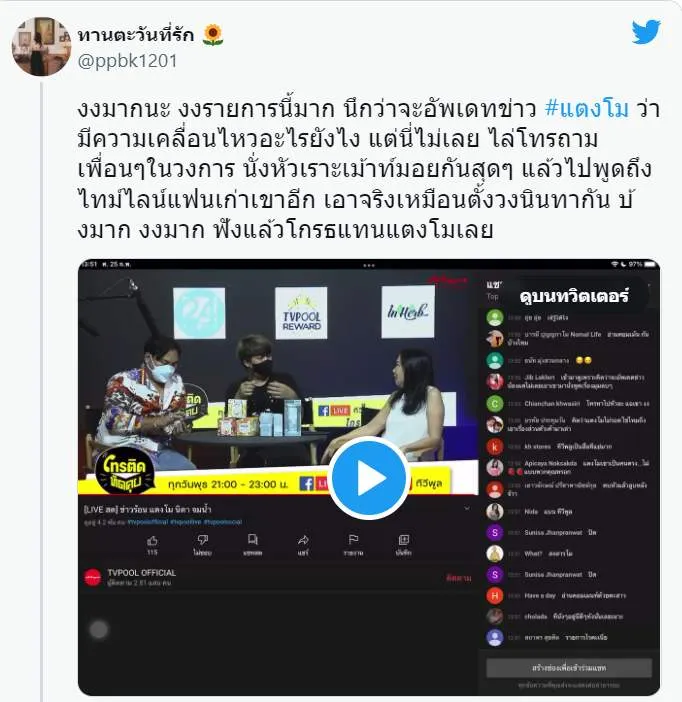 แฮ็ชแท็ก #แบนทีวีพูล เดือดติดเทรนทวิตเตอร์ จากที่เปิดไลฟ์ทีวีพูลพบว่า พิธีกรรายการ ไม่ได้นำเสนอในประเด็นที่แตงโมหายตัวไป